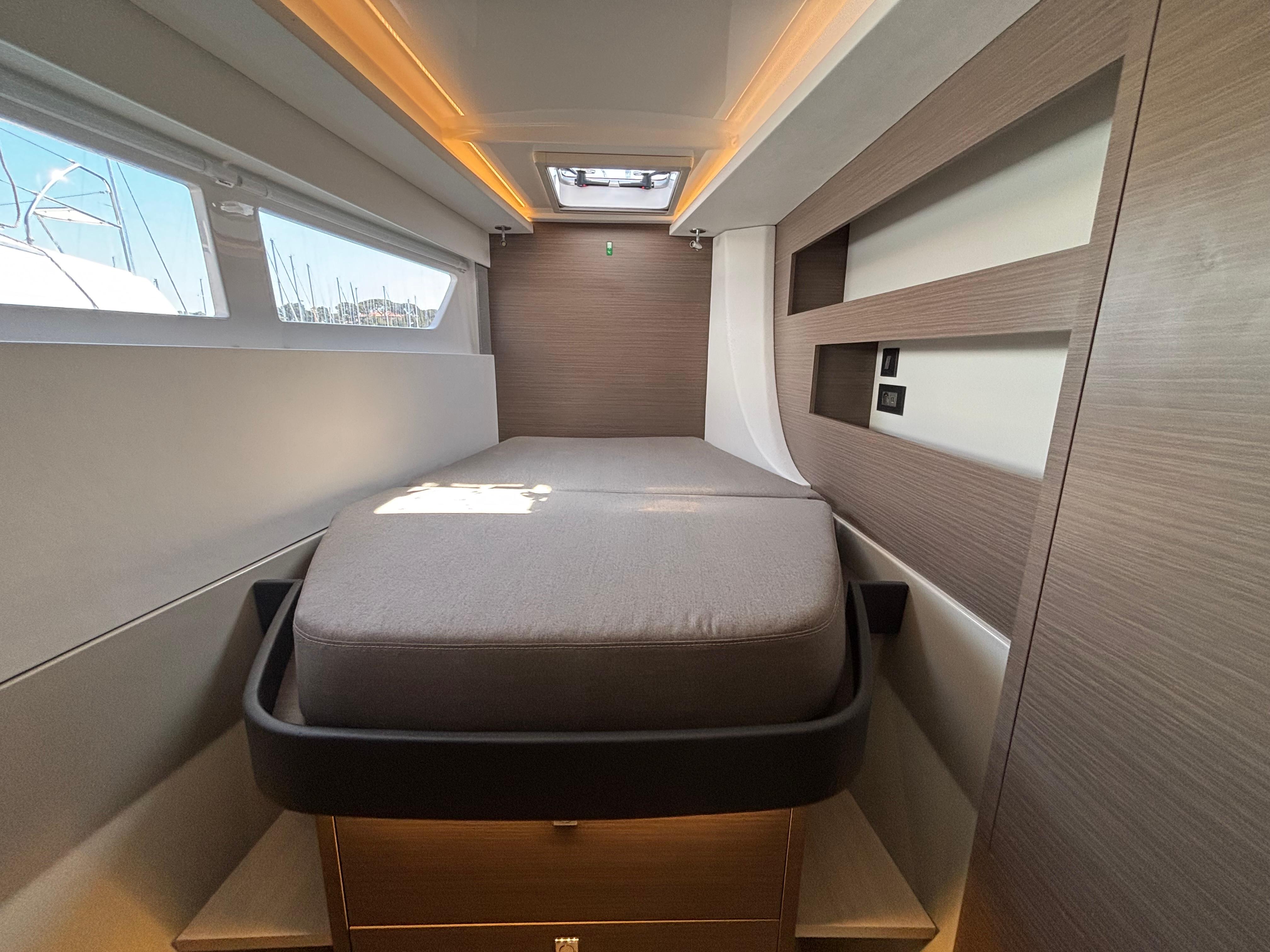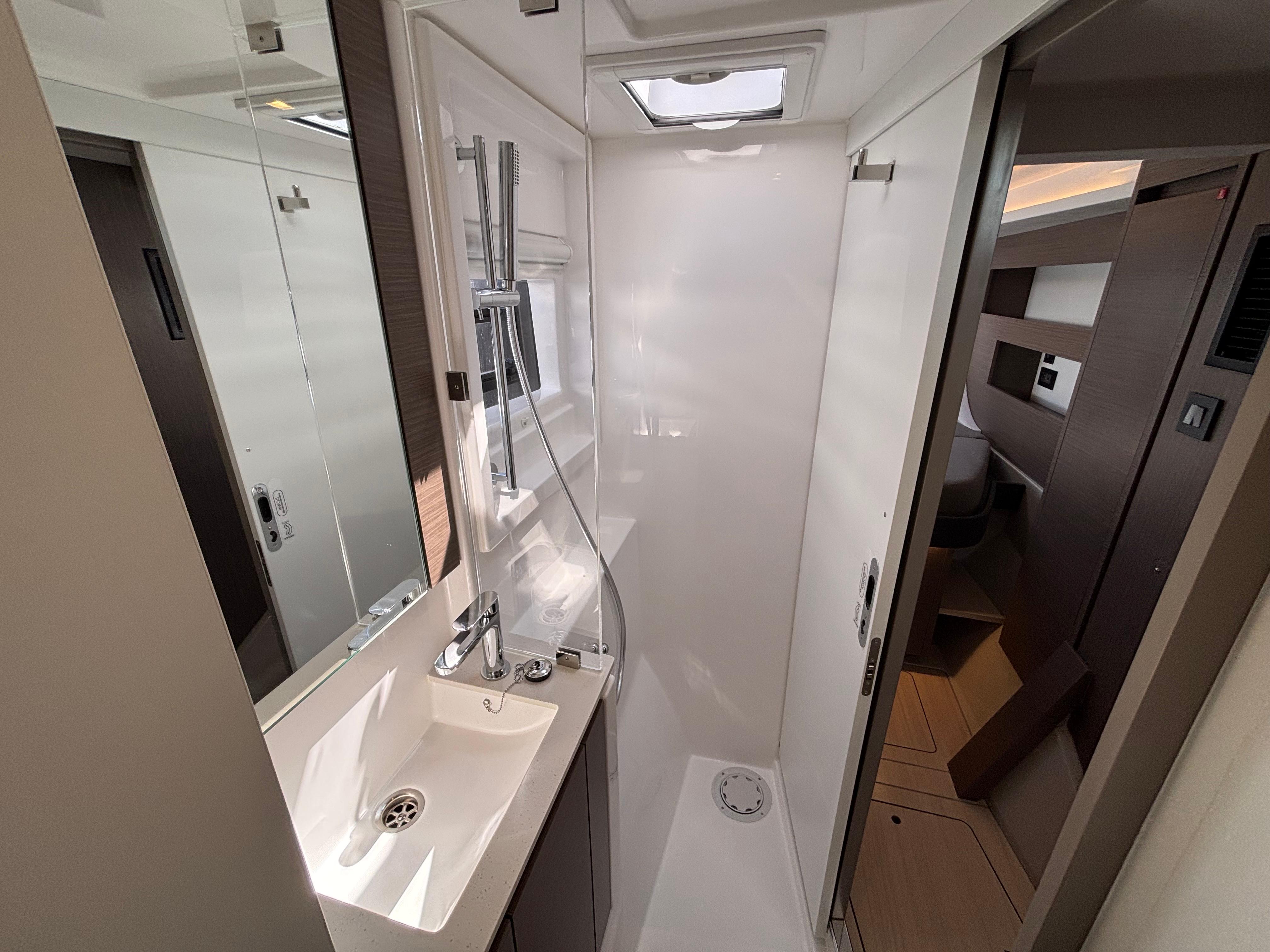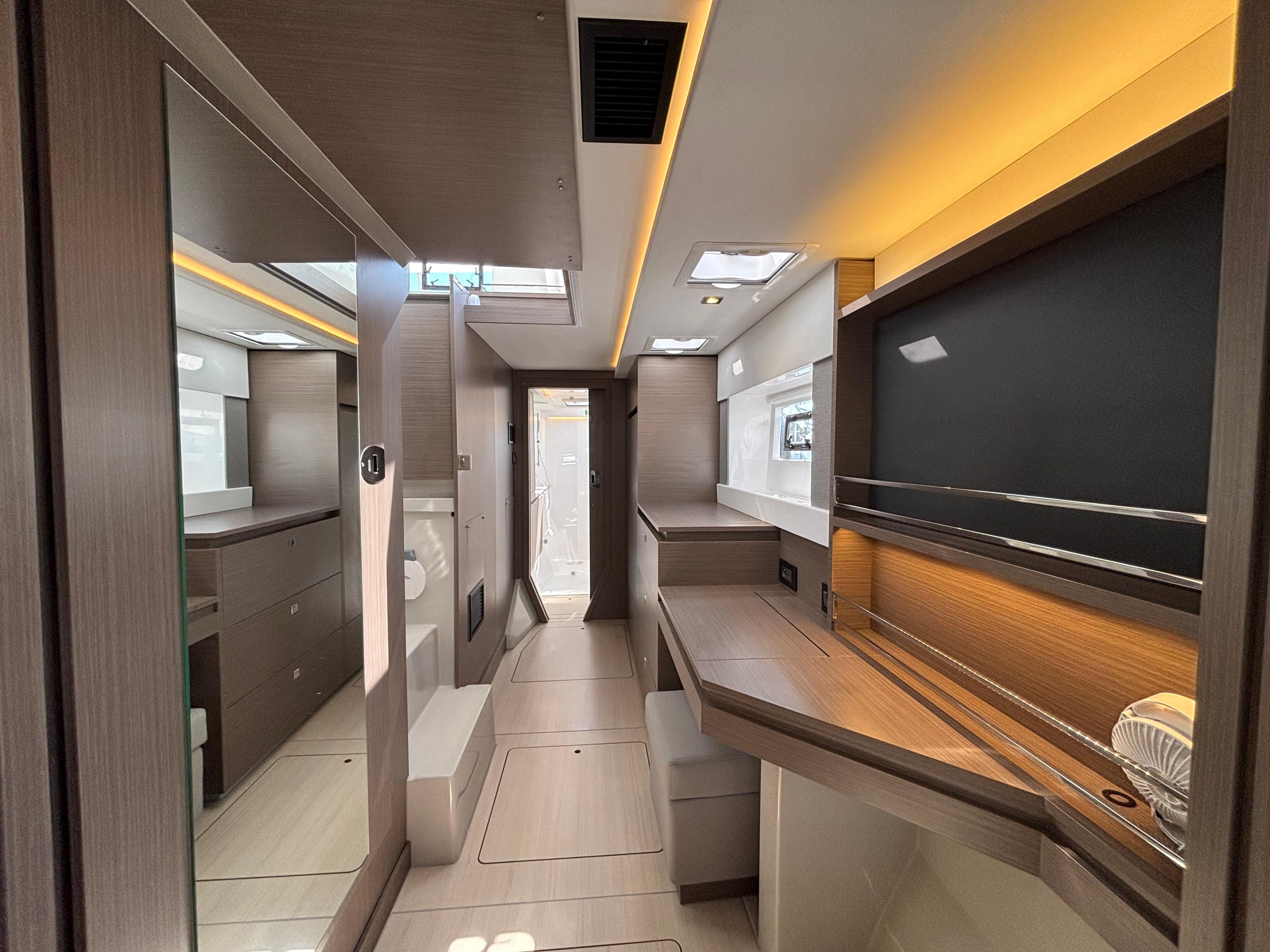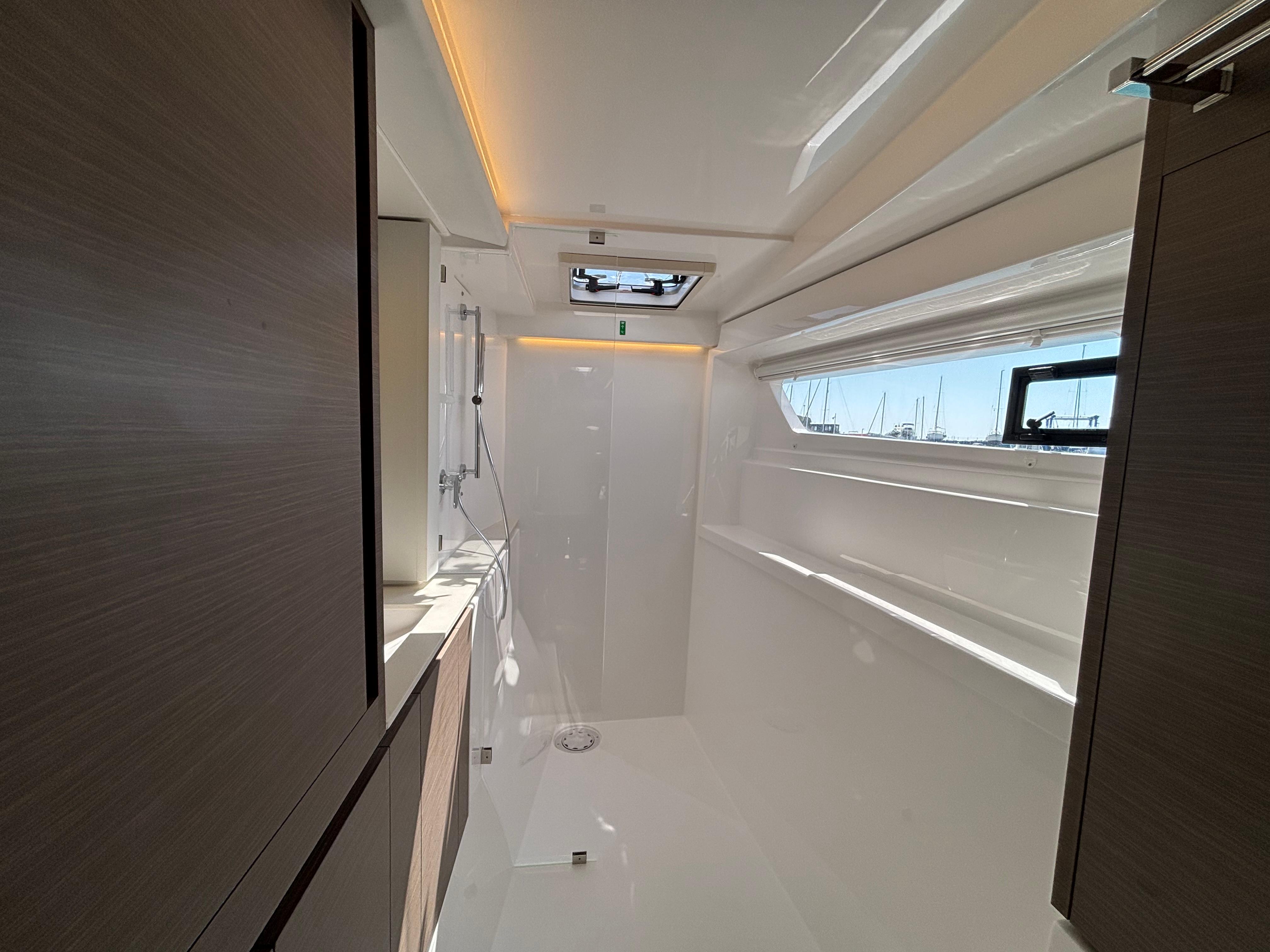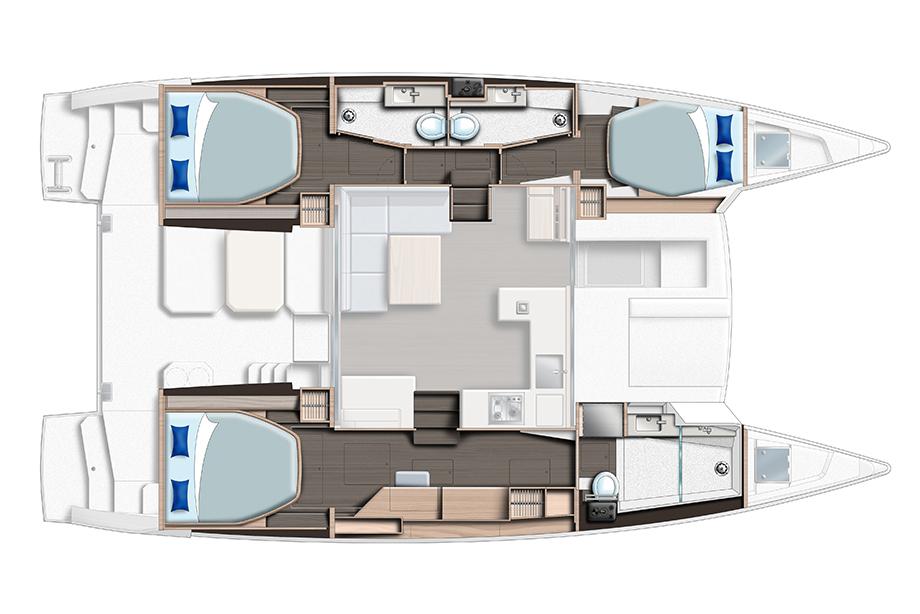A handsome interior reveals generous natural light from optimized window placements including an additional window in the aft starboard corner facing the helm seat and a skylight in the saloon. Preparing meals no longer feels like an afterthought with a forward-facing, L-shaped galley that invites everyone to participate in the process. The Leopard 42 reimagines comfort through its optimal use of space and attention to detail. All bunks are now island berths that allow access from both sides. Available in three cabin/three heads and four cabin/four heads, all cabins include private ensuite heads. All heads also include their own designated shower area, a feature not currently found on catamarans in this size range.