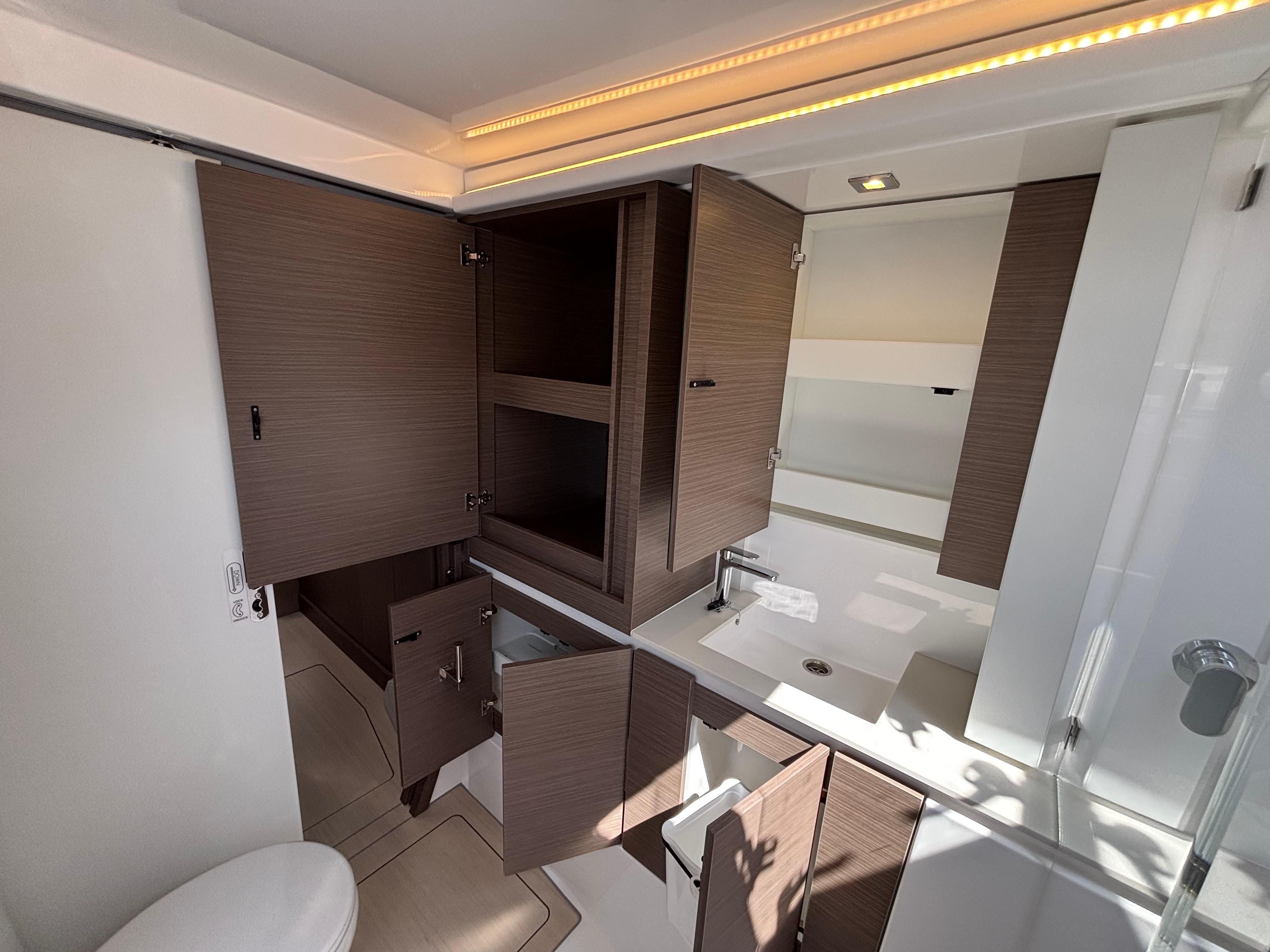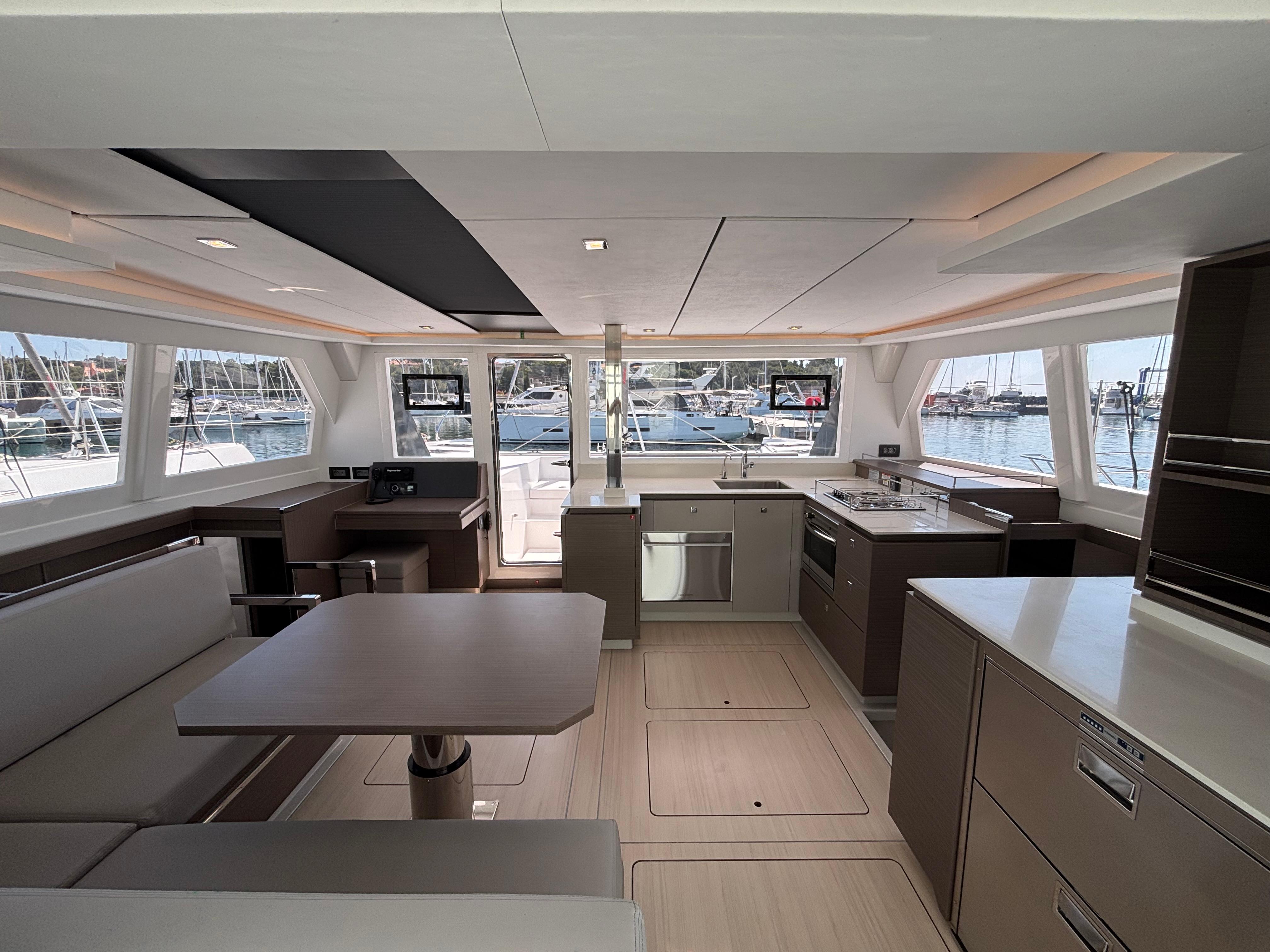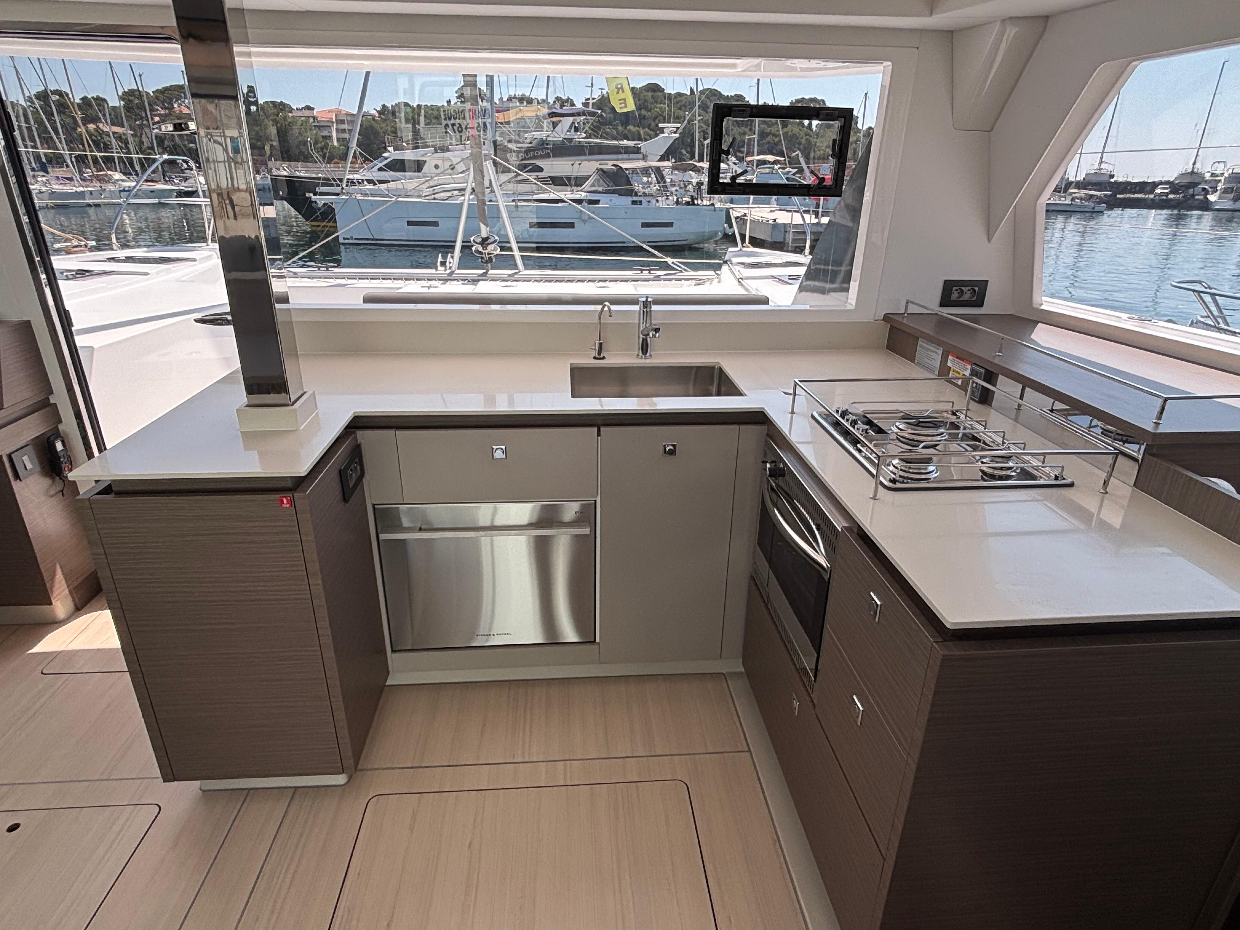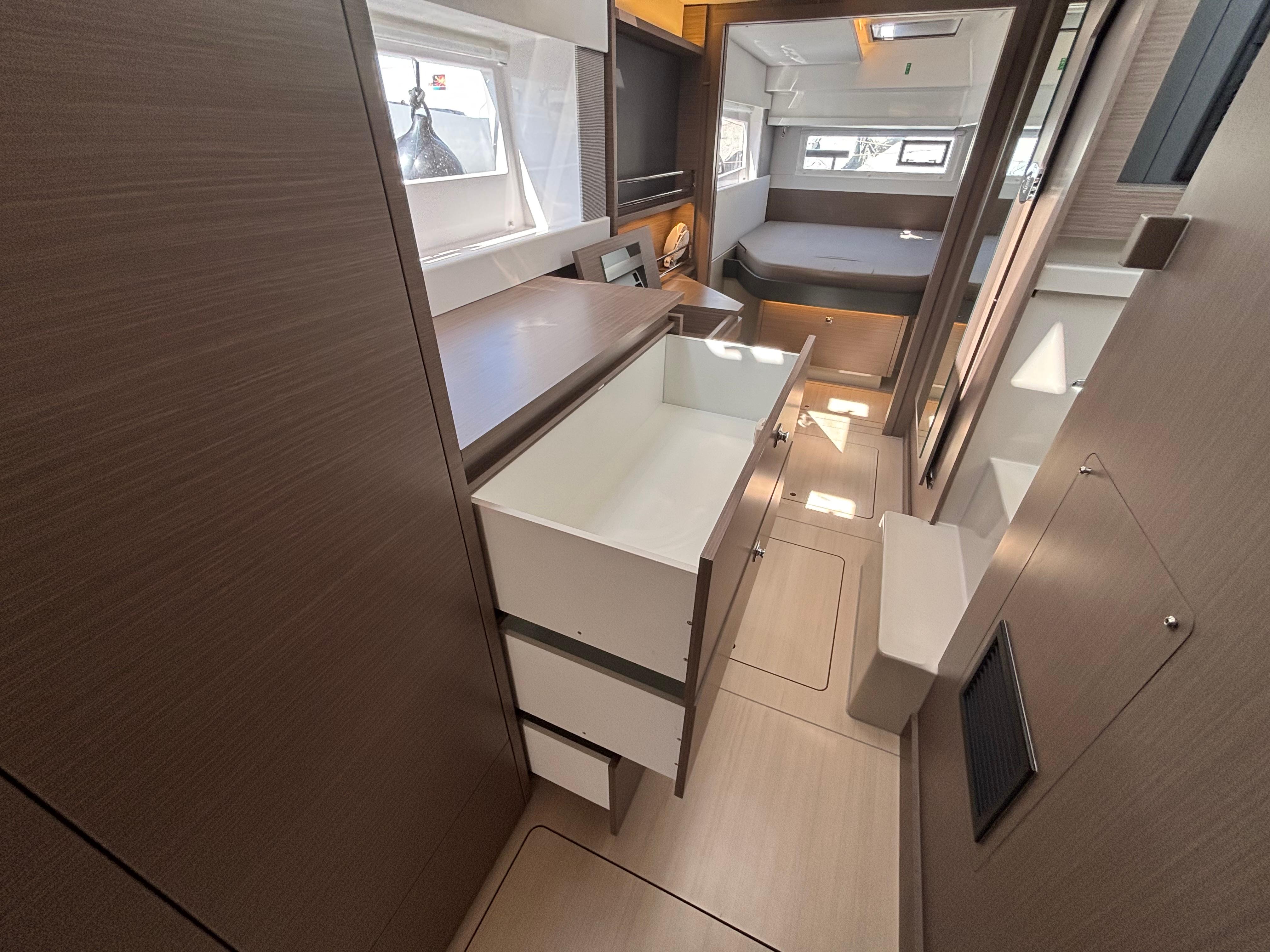 A handsome interior reveals generous natural light from optimized window placements including an additional window in the aft starboard corner facing the helm seat and a skylight in the saloon. Preparing meals no longer feels like an afterthought with a forward-facing, L-shaped galley that invites everyone to participate in the process. The Leopard 42 reimagines comfort through its optimal use of space and attention to detail. All bunks are now island berths that allow access from both sides. Available in three cabin/three heads and four cabin/four heads, all cabins include private ensuite heads. All heads also include their own designated shower area, a feature not currently found on catamarans in this size range.