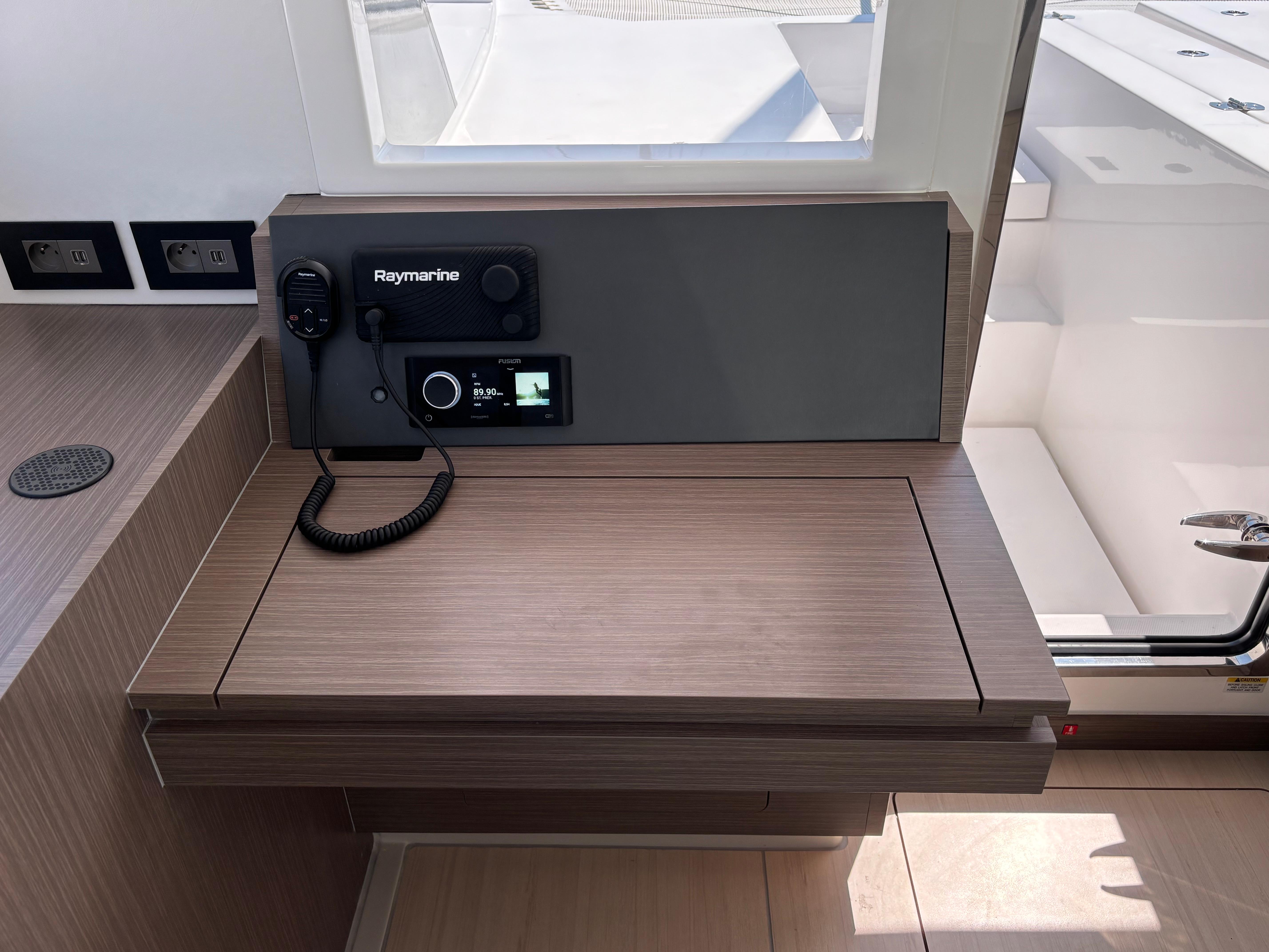 Marine Stereo. Includes Wifi and Bluetooth connectivity. Speakers in saloon (2) & aft cockpit (2). Wired remote control at helm station.