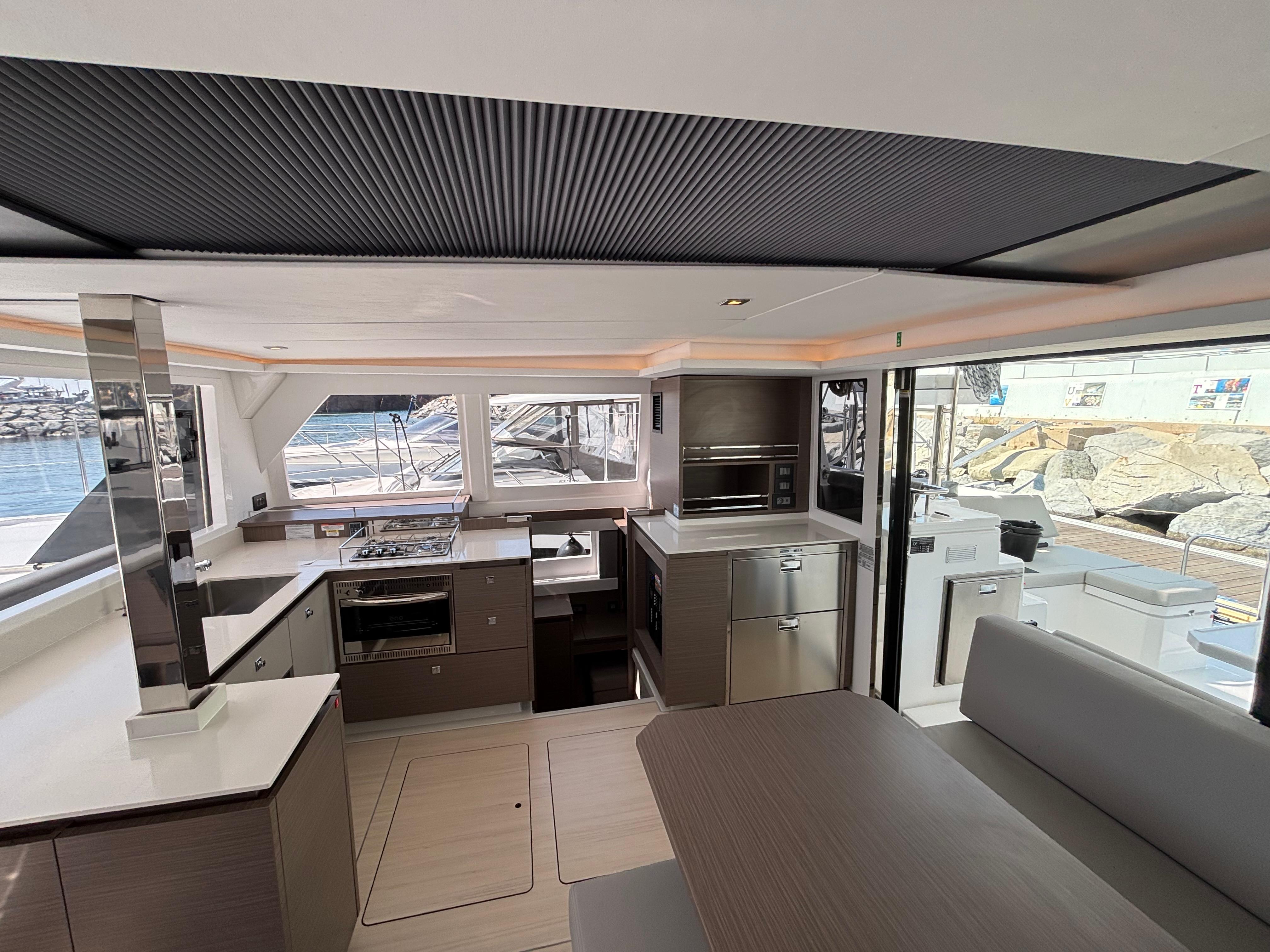 The exterior’s striking design features continuous hull side windows, a continuous hardtop, and Leopard Catamaran’s signature upper-lounge area. Like the Leopard 50, the Leopard 42’s subtle elegance is accented by modern design elements and classic finishes without losing the rugged spirit and sportive quality for which Leopard is known.