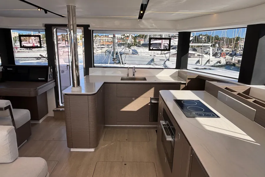 Whichever power option you choose, when it comes to sailing performance, the Leopard 46 excels. The stepped hulls and powerful rig with overlapping genoa provide superior handling in all wind conditions. The protected helm station is designed for offshore single-handed sailing, making it ideal for long-distance voyages.