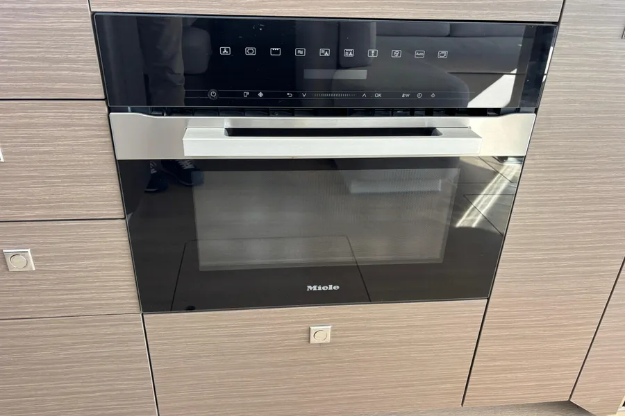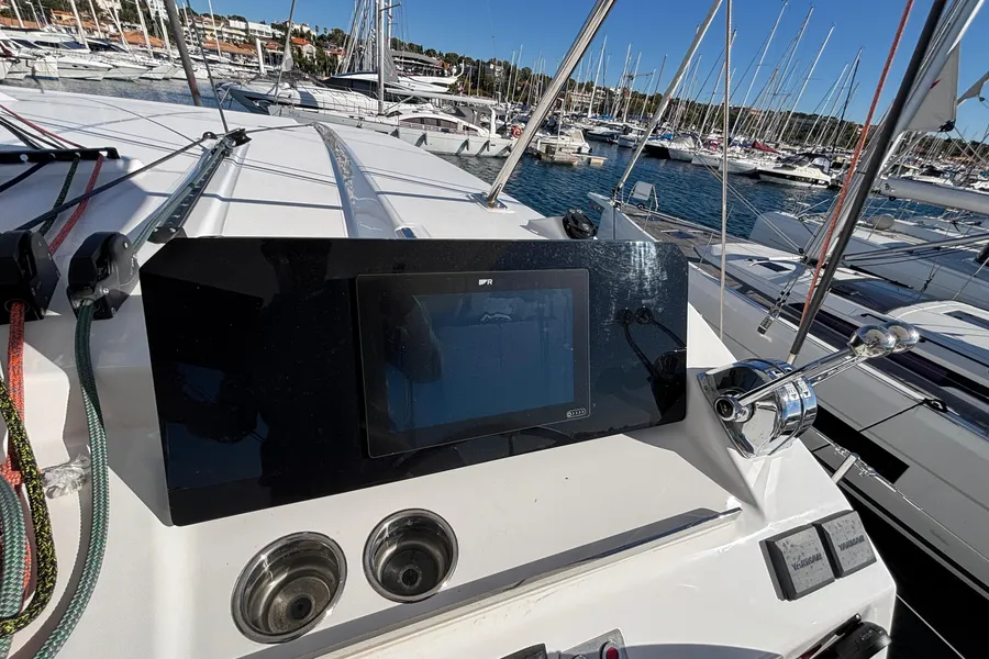 Marine Stereo. Includes Wifi and Bluetooth connectivity. Speakers in saloon (2), aft cockpit (2), fwd. cockpit (2) & coachroof (2). Wired remote controls in Helm station (1), Fwd cockpit (1) & coachroof (1). – Note: Raymarine MFD’s (not included in option) & personal wireless devices (only if connected wirelessly to Raymarine MFD via the Raymarine APP) can control system