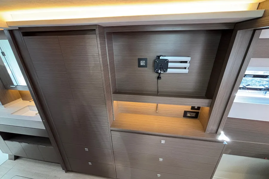 While retaining the core elements that made the Leopard 45 so popular, the Leopard 46 introduces numerous innovations to enhance comfort, convenience, and sustainability. The layout has been refined to provide a seamless integration between the aft cockpit and saloon, allowing for flexible living spaces. The elimination of the skipper cabin has made way for more spacious accommodations, including a choice of three cabins plus a utility room, a four cabin layout, or five double cabins, all with ensuite head/showers.